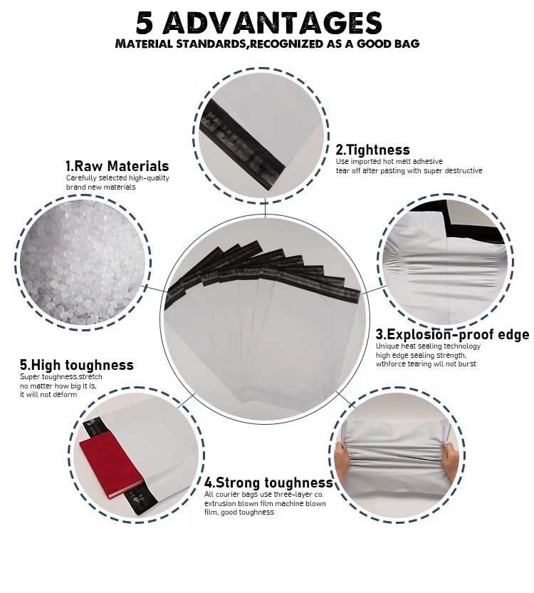 DePE Poly Mailerby Zeal X är tillverkad av högkvalitativt återvinningsbart polyeten (PE) material som är giftfritt, luktfritt och vattentätt. Varje påse är noggrant utformad för att skydda produkter under transporten samtidigt som avfallet minimeras. Dess rivtåliga och fuktsäkra struktur säkerställer att dina varor kommer fram säkert och professionellt. Detta gör det till ett idealiskt förpackningsval för klädmärken, online-återförsäljare och logistikföretag över hela världen.